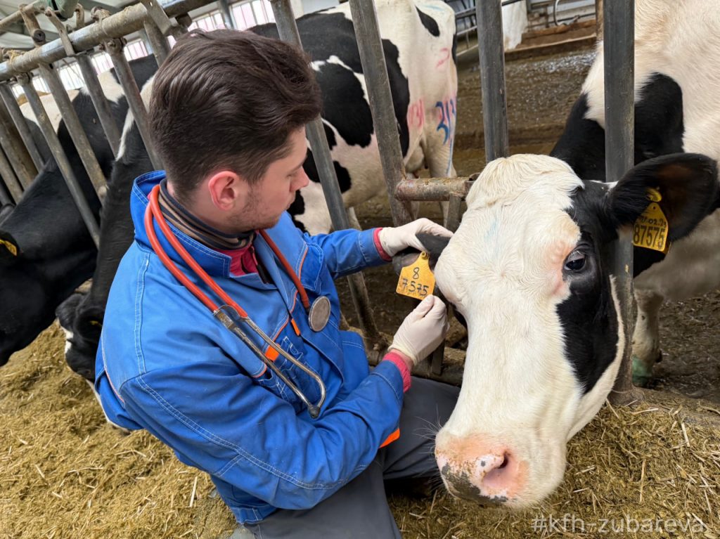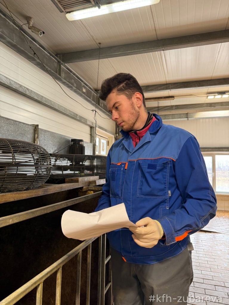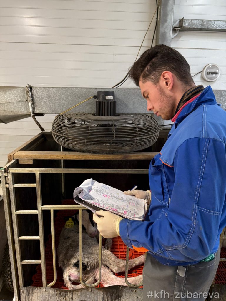 Артём проходит практику в отделе воспроизводства, в родильном отделении, а также на площадке молодняка. На каждом этапе студента курируют наши опытные специалисты.