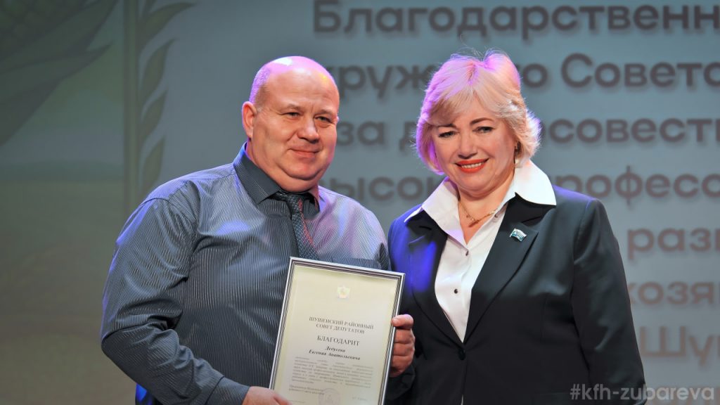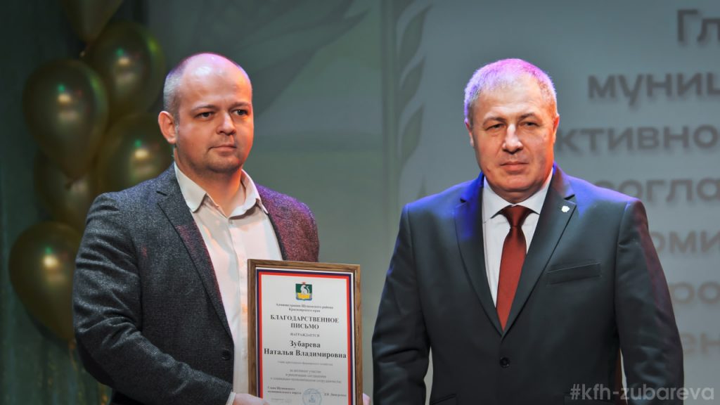 • А также Благодарственным письмом Главы Шушенского МО «За активное участие в реализации соглашения о социально – экономическом сотрудничестве АПК Шушенского МО», награждена глава К(Ф)Х Наталья Зубарева.